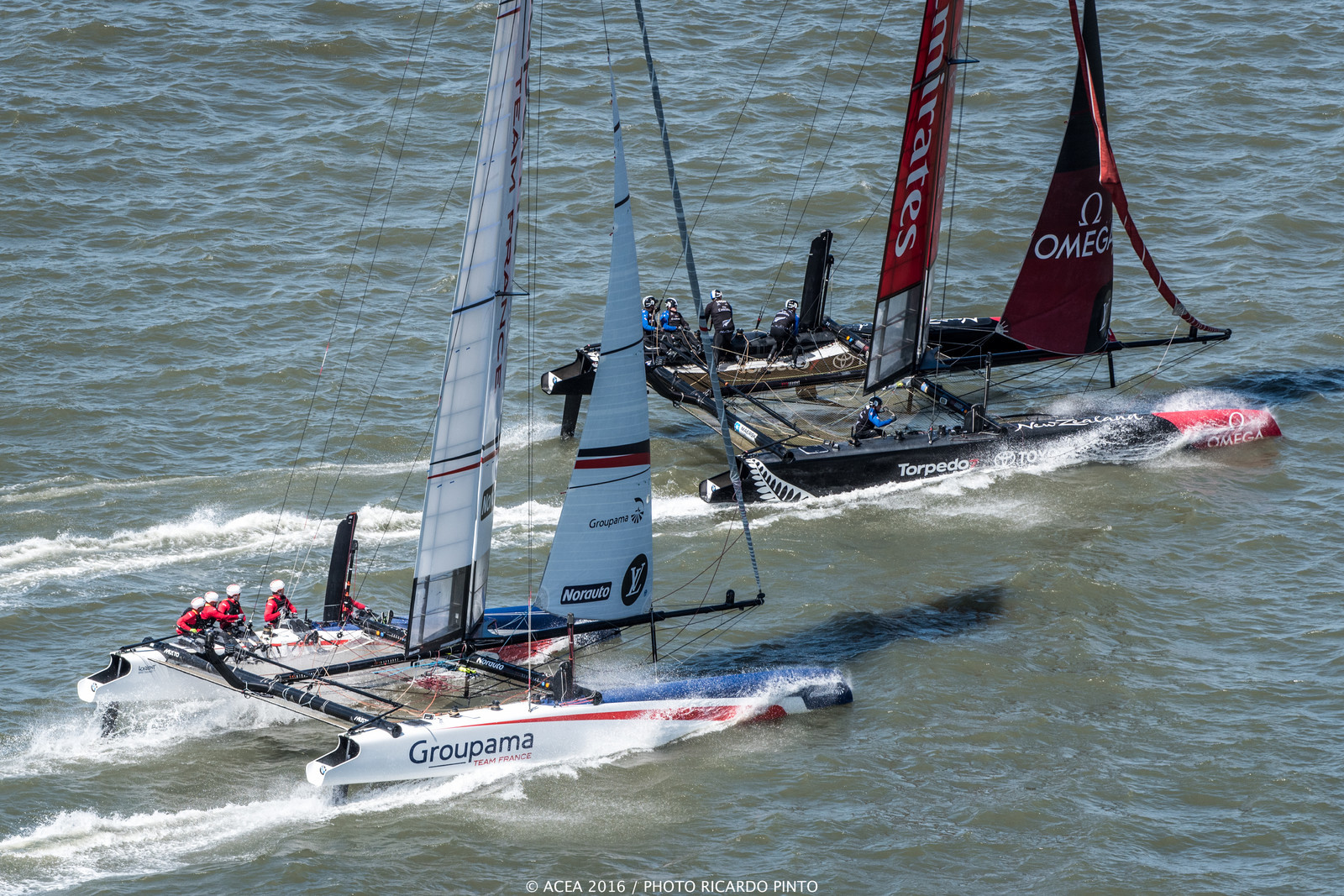 Côté français, cette dernière journée a tourné à la déroute. L’équipage mené par Franck Cammas a été dépassé dans ces conditions stables, avec des phases de foiling moins stables et moins longues que les autres équipages. Les empannages sont également moins bien maitrisés par l’équipage français qui paye probablement ici son manque d’entrainement sur AC45F (les jours de navigation étant limités par ACM), et l’absence d’AC45 Turbo, sur lesquels les autres teams s’entrainent depuis de longs mois. Groupama Team France mettra ce bateau (qui se rapprochera énormément de l’AC50 utilisé sur la Coupe de l’America) à l’eau le 11 juillet et pourra alors naviguer de façon illimitée.