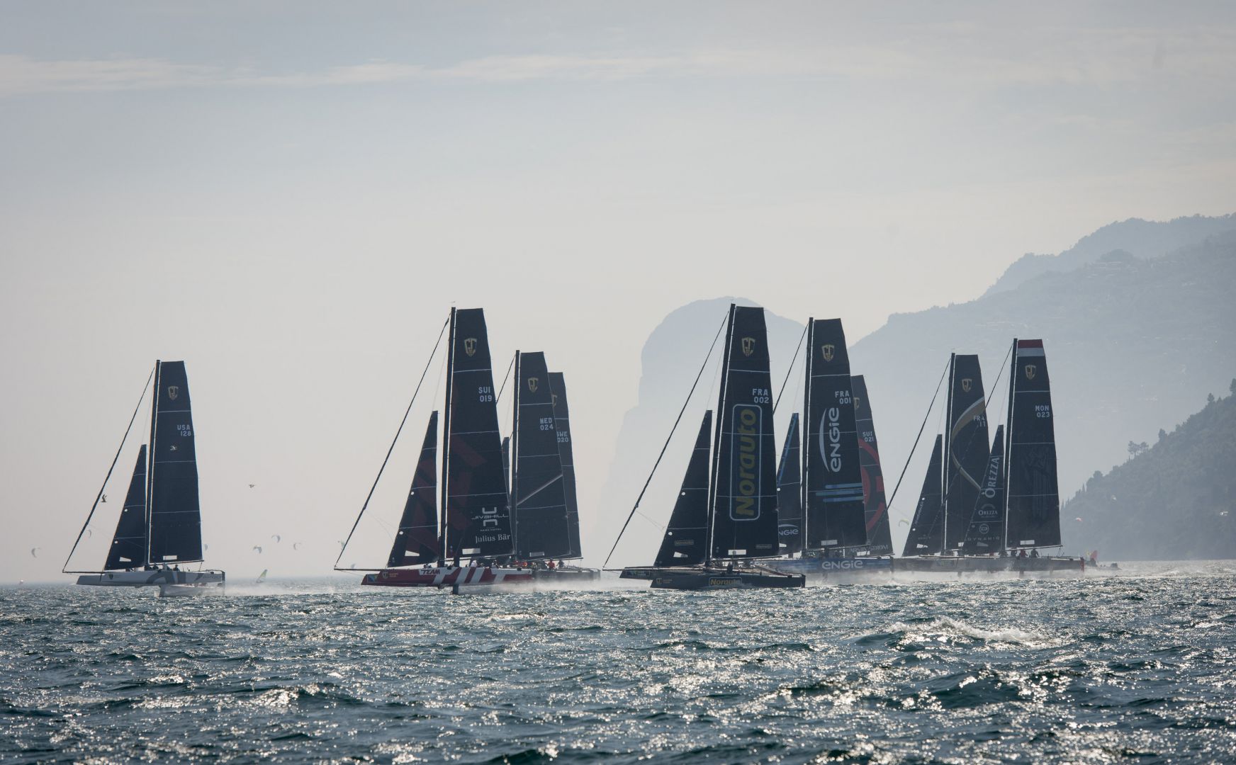 Après trois jours de régates intenses dans un vent soutenu et sous le soleil, les équipages du GC32 Racing Tour ont découvert une autre facette du lac de Garde aujourd’hui avec la pluie et la pétole. Une seule manche pouvait être courue, avant que le comité de course ne renvoit  les concurrents au port.