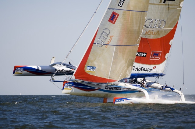 L’équipage du trimaran suisse a remporté les Krys Match, des courses en flotte courues à la Trinité, devant Véolia et Foncia.