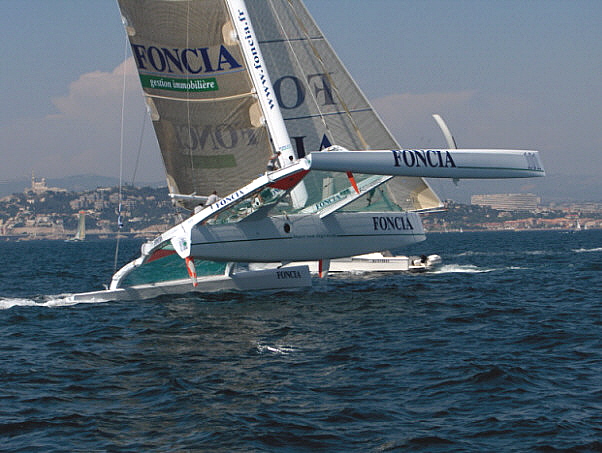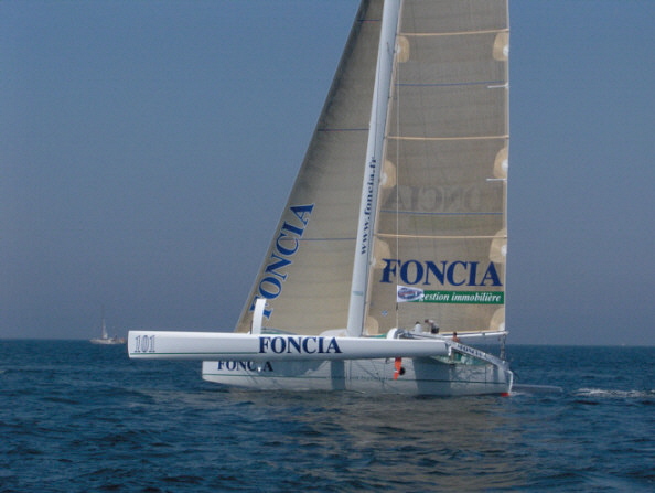 Foncia connaît des résultats mitigés après sa mise à l’eau et de nombreuses avaries au cours de la première saison (démâtage, avarie de bras de liaison sur la Route du Rhum 2002). En 2003, l’équipage chavire lors du Challenge Mondial Assistance, après remise en état, nouvelle casse de la tête de mât au grand prix de Fécamp, puis une 9ème place sur la Transat Jacques Vabre. En 2004 saison vierge de podium pour Alain Gautier, le skipper cède la barre en 2005 à A. Le Cléac’h. Le trimaran a reçu une nouvelle coque centrale durant l’hiver, issue des moules de Groupama 2, la référence du circuit ORMA.