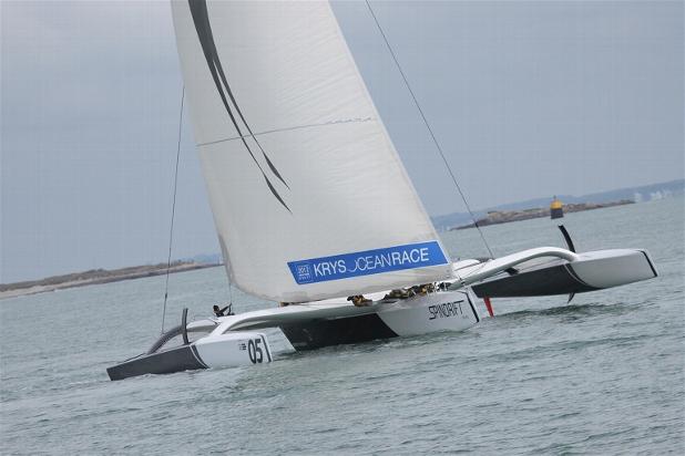 L’équipage de Spindrift racing termine la première course officielle du championnat, la Krys Ocean Race (NY-Brest) en vainqueur grâce un décalage sur une route un peu plus nord que ses concurrents.