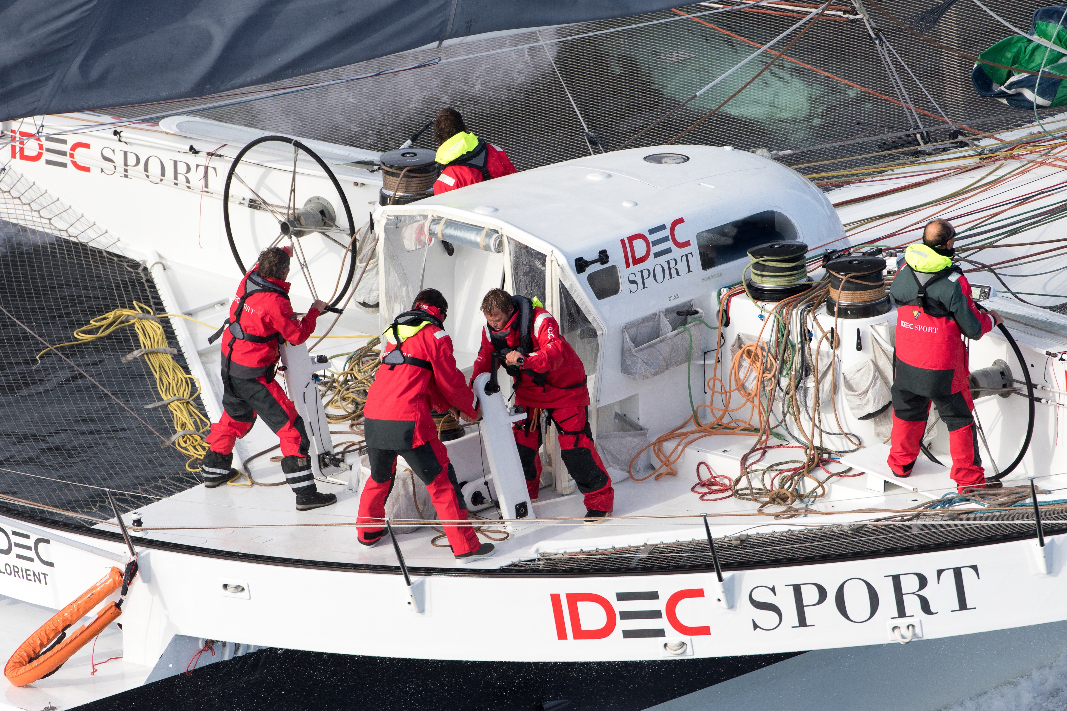 L’équipage réduit d’IDEC SPORT aura connu une dernière frayeur lors de sa dernière nuit en mer avec une collision avec un OFNI vers 4 h du matin ; celle-ci brisant le safran du flotteur bâbord mais sans affecter la structure du bateau. Francis Joyon et ses cinq équipiers ont donc poursuivi leur route vers Ouessant.