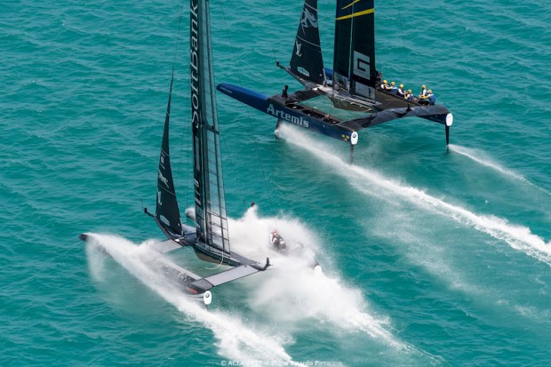 Peter Burling et Glenn Ashby couvrent les américains qui ne parviennent jamais à refaire leur retard, malgré une bataille de virements.