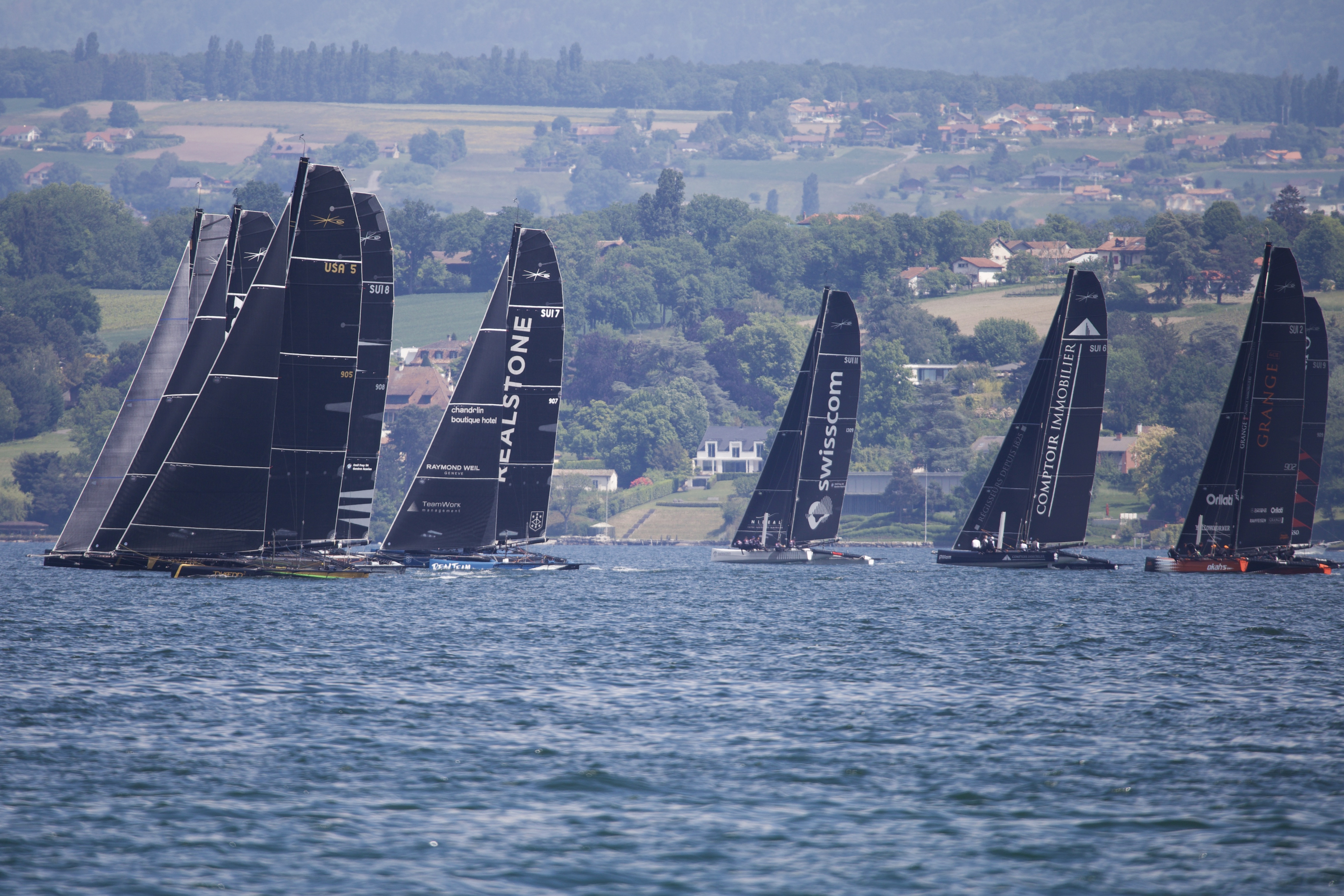 Faute de vent, le grand prix s’est réduit à la seule journée de vendredi, dimanche étant réservé aux courses proAm, la course longue distance entre Versoix et Lausanne prévue samedi n’a pas pu être lancée.