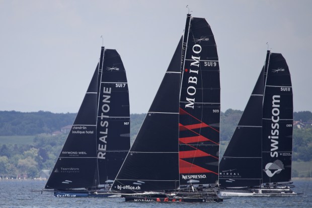 Six manches ont été courues vendredi au large de Genève, comme souvent, l’équipage d’Alinghi se montrait dominateur et très régulier, avec deux victoires et quatre places de second.